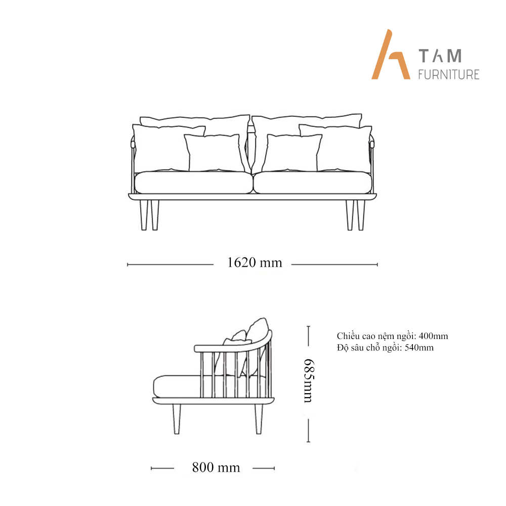 Nổi bật với hai phần gờ tay được bố trí bên hông ghế mang lại cảm giác mới lạ trong cấu trúc nội thất nhờ vào sự kết hợp hài hòa giữa nệm gối và khung gỗ tự nhiên chắc chắn được sơn phủ lớp PU hoàn thiện an toàn cho sức khỏe, vừa tăng tính thẩm mỹ, rõ nét những đường vân gỗ ngẫu nhiên chạy quanh, vừa cho ra các sản phẩm mang chất riêng theo sở thích của riêng bạn.