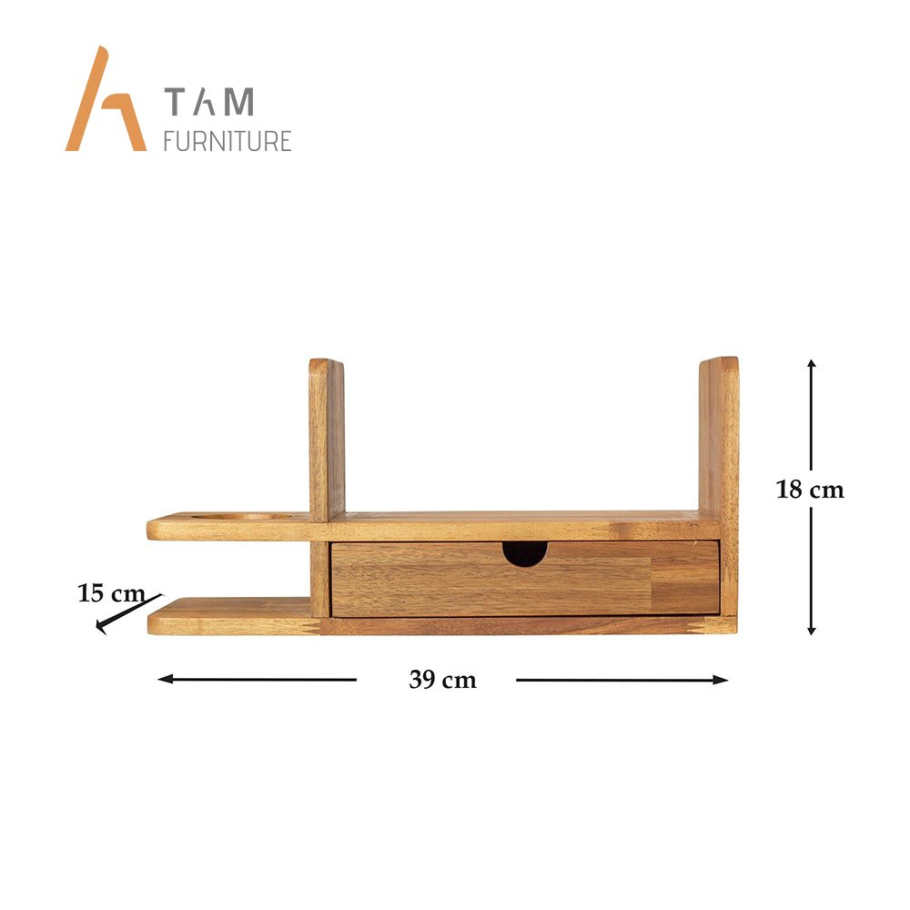 Kệ gỗ trang trí để bàn đa năng giúp cho không gian học tập, làm việc của bạn trở nên ngăn nắp hơn, tiện gọn hơn, bền bỉ hơn với chất liệu gỗ Tràm tự nhiên ghép, kích thước vừa gọn, được xưởng sản xuất trực tiếp không qua trung gian, hàng đã được lắp đặt sẵn đóng thùng.
