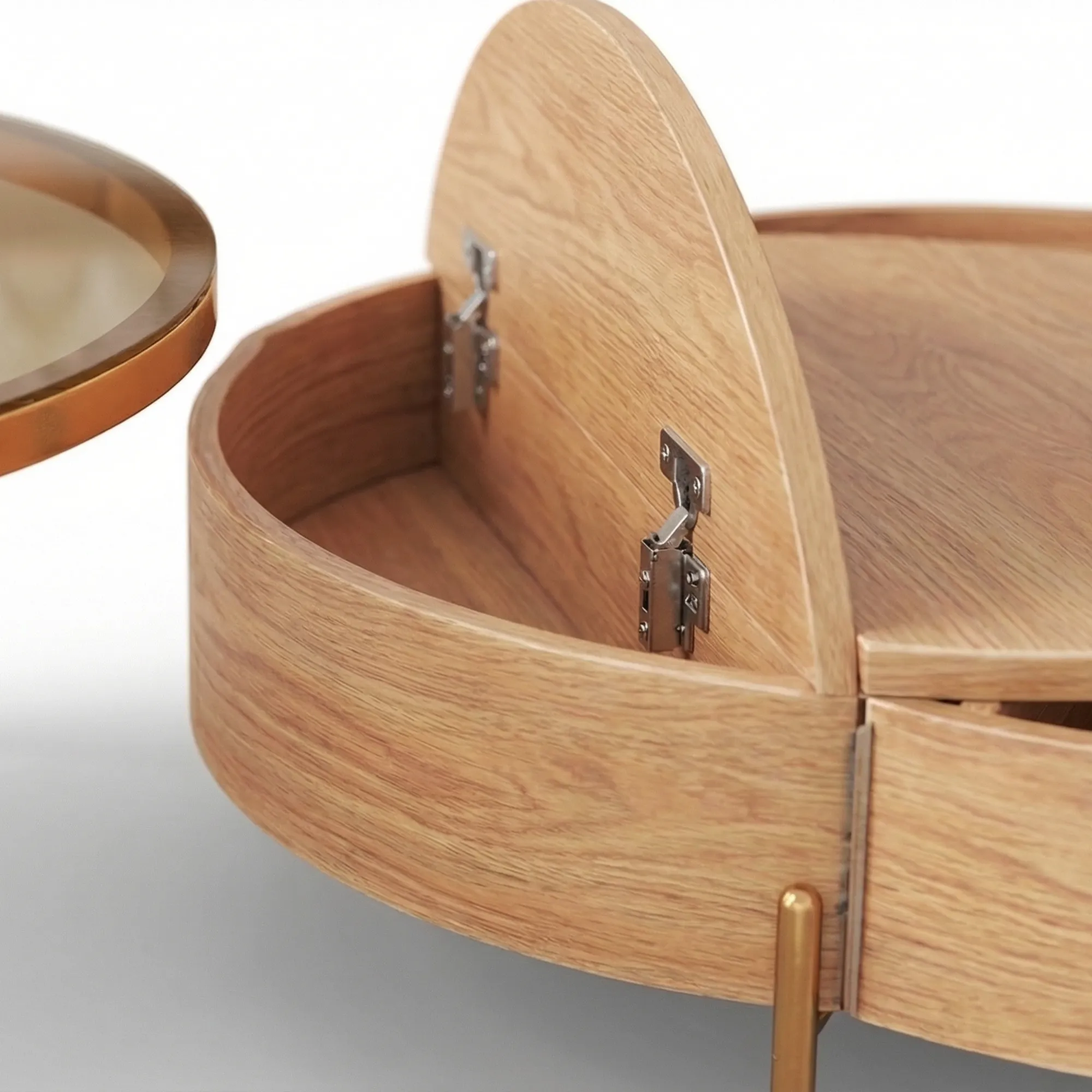 - Mở rộng công năng cho biệt thự và văn phòng: Gia chủ có thể tách rời hai khối để mở rộng phạm vi sử dụng lên đến 1.4 m – 1.5 m. Module kính làm bàn trà chính, module gỗ đóng vai trò bàn góc tinh tế, tạo sự đồng bộ và bề thế cho phòng khách lớn.